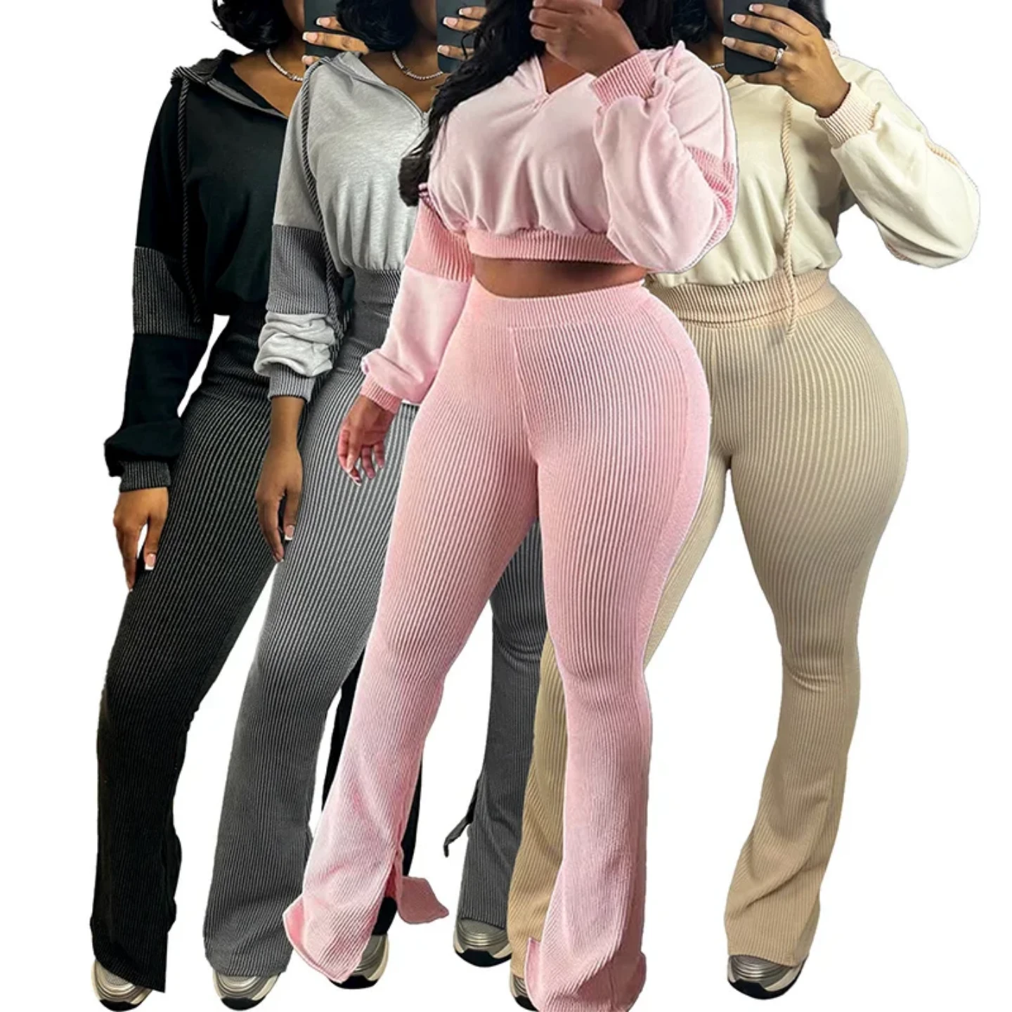 2PC Tight Set hii ni mchanganyiko wa mtindo na faraja kwa mwanamke anayependa kuonekana maridadi kila wakati. Seti hii inajumuisha top ya mikono mirefu yenye zip mbele na suruali tight ya mistari (ribbed) yenye kiuno kirefu (high waist) inayokaa vizuri mwilini na kusisitiza maumbo kwa namna ya kuvutia.